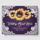 Complemento sua festa de casamento roxa rústica com este elegante e romântico livro de hóspedes roxo e girassol com girassóis em fundo roxo, enfeitado com rendas e luzes de cordas. Itens correspondentes disponíveis.