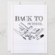 De volta ao Motif da Escola em rabiscos infantis com utensílios escolares em fundo de escrevendo.