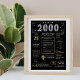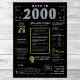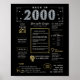 Tome uma jornada de volta a 2000 com nosso cativante poster de aniversário digital, repleta de fatos históricos, eventos significativos e narrativas cativantes do passado. Adorado com ouro elegante e sotaque prateado contra um pano de fundo preto impressionante, este poster de aniversário irradia o charme do eterno. O nosso poster de aniversário oferece um olhar intrigante até 2000, mergulhando em aspectos como renda média, invenções notáveis, ocorrências significativas, tendências da moda e expressões coloquiais da era. Destaca momentos-chave como o advento das plataformas de mídia social, a onda de TV real e o surgimento de serviços de transmissão contínua. Invenções como smartphones, telefones com câmera e carros híbridos ganham palco central, refletindo os notáveis avanços tecnológicos da era. No geral, o poster capta a essência da vida nos anos 2000, encapotando tanto a inovação tecnológica quanto os fenômenos culturais como a música e a moda. Serve como um começo de conversa cativante em comemorações de aniversário e aniversários, e quando elegantemente enquadrado, evolui para uma lembrança apreciada, preservando o espírito dos tempos para as gerações vindouras.