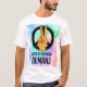 Faça um retorno ousado e colorido com essa camiseta de declaração poderosa. Com uma mão jogando o sinal de paz na frente de um símbolo de paz clássico com um fundo vibrante de tie-dye, o texto **“De Volta por Demanda Popular”** transmite confiança, nostalgia e uma mensagem de unidade, tudo em uma peça.