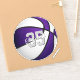 Este adesivo de basquete personalizado apresenta a imagem realista de uma bola de basquete que tem painéis coloridos roxos e brancos alternados sobre os quais você pode personalizar o nome do atleta e o número de camisa - por katz_d_zynes