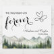 Um elegante design de Casamento com montanhas de aquarela e pinheiros que você pode personalizar com seus detalhes.