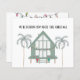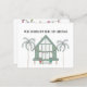 O deque frontal de uma moderna casa de praia verde pastel está decorado com luzes festivas, bandeiras e caixas de presente, pronto para o seu primeiro Natal em um novo lar. As palmeiras sugerem que seu novo endereço fica na Flórida ou em outro estado do sul. A saudação de Natal na frente do cartão diz: "Estamos decorando novos decks neste Natal". Você pode revisar este texto e todo o texto no verso do cartão com suas próprias palavras usando o formulário suspenso do modelo personalizar.