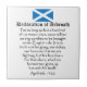As palavras famosas da declaração histórica da independência escocesa conhecida como a declaração de Arbroath em um azulejo. A declaração original foi escrita no latino e assinada o 6 de abril de 1320, na abadia de Arbroath, seis anos depois que Robert o Bruce derrotou o inglês em Bannockburn em 1314. Impresso na rotulação preta, lê "para contanto que mas cem de nós permanecerem vivos, nós em todas as circunstâncias será trazida nunca sob a regra inglesa. Está na verdade não para a glória, nem as riquezas, nem as honras que nós estamos lutando, mas para a liberdade - de isso apenas, que nenhum homem honesto dá acima mas com vida própria." Acima da declaração é um gráfico da bandeira escocesa. Você pode adicionar um fundo da cor com o botão da personalização. #the45 #the45andrising