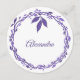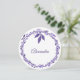 Personalize este Púrpura Woodsy Ultra Violet em design branco para o seu cartão de lugar de declaração redonda ou de escolta. As tendências de planejamento de casamentos incluem cartões de lugar em destaque - esta bela design apresenta minha mão desenhada, vinha dupla entrelaçada, com uma abundância de folhas roxas profundas no topo. A frente desta placa redonda tem áreas de impressão separadas na frente e atrás. Para usar isso como um cartão de escolta, escreva (ou impressão) os números de tabela no verso em vez do modelo de texto atual "Comer, Beber e Ser Casado". As terras arborizadas e as florestas são a maneira moderna de acrescentar um toque de apelo rústico, mas com um tema mais sutil da natureza. Perfeito para a noiva, estas escoltas redondas brancas ou cartões de lugar roxos podem ser pré-impressos ou manuscritos em casa. Faça uma declaração na sua recepção de casamento.