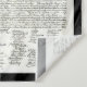 Uma cópia da declaração de independência, completa com as assinaturas, está nesta tapeçaria da parede. A imagem é dominio público devido aos direitos reservados expirados.