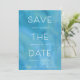 Moderno, mas costeiro, salve a data design nos recursos sans serif e itálico em branco nítido, com seus nomes, data de casamento e local intercalados com "salve a data". Um fundo de lavagem a aquarelas em tons ricos de turquesa, chalé e azul adiciona um charme elegante de praia. Personalize com suas informações de convite e/ou site de casamento na parte inferior. Um chic da praia salva a design de data para casamentos de verão, destino ou praia.
