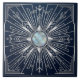 Abrace o apelo sofisticado da era Art Déco com este impressionante azulejo náutico. O design apresenta um esplendoroso sol que emana de um centro semelhante à madrepérola, detalhado intrincadamente com linhas prateadas sobre um fundo azul-marinho profundo. Elementos náuticos sutis, como âncoras e ondas, são artisticamente tecidos no padrão geométrico, adicionando um toque marítimo único. Este azulejo é perfeito para adicionar uma peça de destaque a qualquer cômodo, evocando um senso de elegância atemporal e charme costeiro.