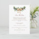 Esta elegante floral e decoradora de Natal salvou o cartão de data apresenta um simples fundo branco, flores e folhagem de cor de água festiva, decoração de natal, e um elegante modelo de casamento que é fácil de personalizar.
