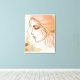 Uma ilustração de uma figura feminina em bronze, ouro e listras de ouro nas cores de fundo. Ao redor do rosto há um casal de linhas desenhadas à mão, wisps e tendrils numa cor de ouro bronzeado. O fundo da aquarela tem cor-de-rosa suave, pêssego