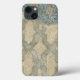 A decorative silver tapestry showcases a circular floral arrangement. This print would make a wonderful gift for people who love tapestries or tapestry-style art!