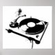 Deejay DJ Turntable poster com uma imagem preta de vinil girando no baralho. Quer você goste de música caseira ou hip hop, isso é um dever! Design é uma retirada preta de DJ, parece excelente em uma cor clara de fundo.