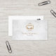 Este elegante cartão de visita de DJ profissional apresenta um elegante fundo de textura de mármore. Um ícone dourado girável aparece na metade superior da placa. Seu nome e título aparecem na parte inferior do meio, abaixo do quadrado monograma dourado. Perfeito para profissionais, entretenimento, espetáculos, concertos, talento, música, temas musicais.