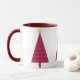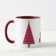 Mug em uma tomada moderna simplificada de um clássico motif de árvore de Natal, damasco de satin colchado