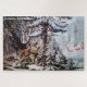 Grande quebra-cabeça com uma reimpressão de um litógrafo vintage, chamado "Deer Shoting - "On The Shattagee", mostrando uma cena de caça a partir dos anos 1800 com um frontal de pele seca trabalhando para sua comida caçando veados na profunda neve do inverno. Esta é uma boa quebra-cabeça para um homem que é caçador.