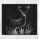 In this black and white drawing, a majestic deer with antlers is depicted standing in the middle of a peaceful and serene natural setting. The deer is drawn with intricate details and a realistic approach, capturing the essence of its wild beauty.