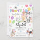 Projetado para nossa primeira coleção de aniversário, este Cartão de Convite personalizável contém balões, cães, decorações coloridas e fontes decorativas. Itens correspondentes disponíveis.