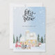 Cartão de Natal elegante com tema de neve. A casa coberta de neve, uma árvore de Natal, um boneco de neve e o Papai Noel são as principais características deste cartão... Combinado com uma tipografia única "Deixe nevar" torna-o mais fofo e elegante. Deseje ao seu querido com este cartão neste Natal.