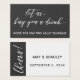 As palavras "vamos comprar-vos uma bebida" foram traduzidas como uma camada gráfica tipográfica típica, com uma fonte moderna, escrita à mão. Abaixo você encontrará as palavras "Bom para uma bebida grátis para adultos". Esta cópia pode ser modificada se quiser. Todo texto aqui é branco sobre um fundo de cinza escura. // No verso, o "tipo de rico" foi usado para criar uma leitura gráfica "Cheers!" que foi rotacionada 90 graus e adicionada sobre a banda ao longo do lado esquerdo. O outro tipo foi manipulado ao contrário: seus nomes e datas aparecerão na cinza escura sobre um fundo branco. Você pode mudar as cores de fundo se quiser uma paleta diferente. // Esta design foi criada para complementar um moderno e crescente suite de casamento que apresenta essas fontes e essa matiz de cinzas escuras coladas com branco. // Neste conjunto há também uma opção de ingresso de bebida com palavras humorísticas; verifique se você quer algumas opções. // 9 // Concebida por Melody Watson para Paper Muserie.