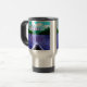 Esta caneca de viagem do café ou do chá caracteriza uma fotografia de uma canoa em um lago em Montana com as palavras "deixou o amor seja seu guia!"