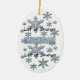 Um design gráfico de flocos de neve do artista/designer Charmaine Paulson em um Enfeites de natal. O ornamento tem o texto "Deixe-o nevar Michigan", e modelos para sua personalização.