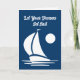 Deixem os vossos sonhos velejar o cartão náutico. Cartão de aniversário personalizado com silhueta de veleiro. Marinho azul e branco. Personalizar com dentro de mensagem personalizada. Perfeito para marinheiro, capitão de barco, capitão, pescador, amigos, família, etc.