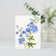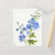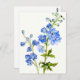 Cartaz botânico de arte cotidiana com dois picos de flores azuis delfinium. Impressão é tirada da pintura original em aquarela pela artista Sarah Trett.