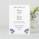 Anuncie seu dia especial com este belo e personalizável Convite para Casamento Elegante de Tulipas Azuis Delft. Apresentando lindas tulipas brancas e azuis pintadas à mão, este convite de dois lados oferece uma estética refinada e inspirada nos holandeses para seu jardim ou celebração formal. A parte traseira apresenta um impressão de coordenação para um toque elevado. Personalize os convites com o local de encontro High Hopes Wedding Estate, os nomes de casal Anna Johnson e James Jefferson, ou o pedido tradicional O prazer de sua empresa celebrar seu casamento.