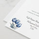 Anuncie seu dia especial com este Convite de Casamento de Fotos do Delft Blue Tulip personalizável. Este elegante convite de dois lados apresenta a clássica borda floral azul e branca na frente para todos os detalhes da sua cerimônia. O verso oferece um belo layout para incluir sua foto favorita e apreciada junto com a tulip art. Personalize os convites com a data de casamento de 5 de maio de 20XX, a nota Ver nossa linda foto no verso, ou os nomes de casal Anna Johnson e James Jefferson.