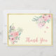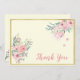 Este cartões de agradecimentos encantador apresenta rosas bonitos e delicados em tons de rosa-pincelado com botânicos verdes. O fundo é um amarelo pálido e macio. Uma faixa de folha de ouro borda toda a placa de nota e "Obrigado" é escrito no canto inferior em uma fonte de script bonito. No verso está um pequeno spray de flores no canto contra o fundo amarelo pálido, onde você pode escrever sua nota personalizada.