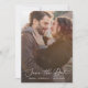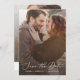Este delicado modelo de foto da camada escura para salvar o cartão de data é perfeito para um casamento moderno. A design romântica minimalista apresenta uma magnífica e elegante tipografia branca num fundo fotográfico com um aspecto sofisticado.