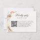 Cartão RSVP elegante e romântico apresentando uma ilustração de cor d'água na moda boêmica de flores secas e grama pampas em uma paleta de cores blush & Earth complementada com fontes modernas, e um Código QR prático para direcionar seu convidado para o site de casamento para RSVP on-line