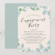 Os convites para festas de noivado elegantes são perfeitos para uso em festas de noivado de primavera e verão. O design apresenta uma coroa botânica verde-aquática moderna, caligrafia na moda, fundo bege na frente e cor verde-sábio no verso (mude a cor de fundo com a ferramenta Personalizar).