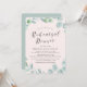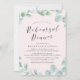 Os convites de janto de ensaio elegantes são perfeitos para serem usados em casamentos de primavera e verão. O design apresenta uma coroa botânica verde-aquática moderna, caligrafia por na moda, um fundo de rosa claro na frente e uma cor verde de sábio no verso (altere a cor de fundo com a ferramenta Personalizar).
