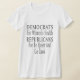 Fácil de ler: "Democratas pela Saúde das Mulheres, Republicanos por estarem quietos e irem cozinhar". Disponível em vários estilos e cores para homens e mulheres. Descontos para várias ordens. Por D. Bennett, da Balance America.