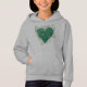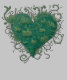Pessoas falam sobre ter um polegar verde, talvez algumas pessoas tenham um coração verde. Um coração é formado por um arranjo intrincado de folhas verdes e tendões, criando um padrão exuberante, orgânico.