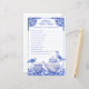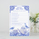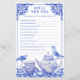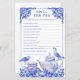 Este Jogo de Chá de panela tem um design monocromático com um conjunto de chá azul e branco rodeado de pássaros e flores. A parte superior tem decorações de canto do ornamentado. Você pode editar o texto para atender às necessidades do seu evento.
