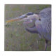 O Herão Azul Excelente na fotografia original deste pequeno Azulejo cerâmico está mostrando sua plumagem, parecendo um pouco com um porco-espinho, enchendo suas penas para se fazer parecer maior, para dizer a outro pássaro que é seu território. Na foto que vemos o pássaro em perfil, sua coloração azul de cinza terminando em uma cabeça branca com bandas azuis profundas em cada lado. Seu longo bico amarelo está apontando hetero à frente enquanto ele caminha em frente com seu longo e curvo pescoço, preso contra seu corpo. O fundo das gramíneas está em tons de terra mutada com pedaços de verde ao longo.