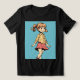 A ilustração mostra uma alegre menina de 9 anos vista por trás, seu corpo de cheio mostrado em um estilo de desenho de tinta fofo. A senhora deputada está a olhar para a direita enquanto avança com a mão direita apontada nesse sentido. Ela veste uma saia e uma camisa de manga comprida, com as mãos levantadas em gesto entusiasmado. O uso de cores alegres melhora o humor alegre e animado do desenho.