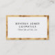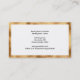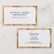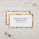 Um cartão de visita elegante com fundo branco, texto preto e borda falsa dourada.