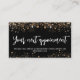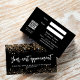 Fundo preto decorado com falso brilho dourado, faíscas. Voltar: Personalize e adicione seu nome de empresa, número de telefone, email, endereço de site, código qr ao site ou conta de mídia social.