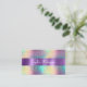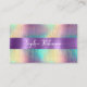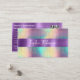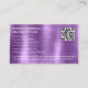 Um cartão de visita com um design de metal holográfico bonito e roxo.
