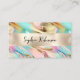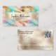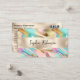 Um cartão de visita com um design de folha holográfica e pérolas bonito.