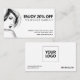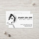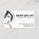 Este cartão de desconto de salão profissional preto e branco tem uma sensação de negócios, mas amigável. Adicione as informações de sua empresa para corresponder à imagem de marca. Todas as partes deste cartão de desconto podem ser editadas facilmente com suas próprias informações. Dê aos seus clientes uma recompensa especial pelos seus negócios e lealdade. Os cartões de presente e desconto incentivam a repetição de negócios.