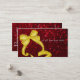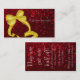 Um cartão de visita que caracteriza um vale ou um presente para um salão de beleza com um fundo sparkly, glittery, vermelho, e um grande, arco do ouro que olha como uma caixa atual. Aperfeiçoe para cabeleireiros, hairstylists, cosmetologists, cosmetologia, salões de beleza e mais!