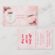 Um cartão de visita que caracteriza um vale ou um presente para um salão de beleza com um fundo do rosa pastel, com flocos de neve, um ornamento e um par de tesouras/tesouras. Aperfeiçoe para cabeleireiros, hairstylists, cosmetologists, cosmetologia, salões de beleza e mais!