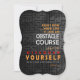 "Agora mesmo ... sua vida é como um CURSO OBSTÁCULO. Use-o para se descobrir. Seja tudo o que você era NASCER de ser." Esta mensagem inspiradora e motivacional encoraja-o a tirar proveito de cada obstáculo, transformando-a numa oportunidade de descobrir quem você é e do que é capaz. Design: Bold block letters em labirinto preto.