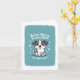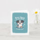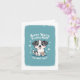Este cartão de boas-vindas que você projetou traz um sorriso para qualquer um que precise de alguma alegria. A ilustração cartoon adorável de um cão com uma orelha e perna curvada é incrivelmente charmosa, com sua casaco de pele branca e cinza e rosto sorridente. O fundo azul com um efeito de vinheta melhora a aparência geral do cartão, fazer o cão se destacar ainda mais. A mensagem no topo que lê Lamentamos que esteja sentindo RUFF em uma fonte infantil é simultaneamente punível e carinhosa, enquanto o Get Good Soon no final adiciona um toque sincero. Os rabiscos brancos de copas e estampas de pata de cão espalhados pelo fundo amarram todo o design, criando uma atmosfera quente e carinhosa.