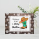 Você está procurando um cartão de Natal estilo country para desejar aos seus amigos e familiares um Feliz Natal? Aqui está um cartão doce com gráficos de botas de cowboy com azevinho, chapéu de cowboy e o texto, "Desejando a todos um Feliz Natal. Madeira rústica e fundo de flocos de neve.