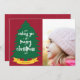 Cartão com fotos de Natal com uma árvore de Natal verde contra um fundo vermelho com as palavras "Desejar um Feliz Natal". É o cartão perfeito para o Natal e feriados do ano novo. A placa inclui um lado traseiro correspondente. Personalize-o substituindo o texto do marcador de posição e substitua a foto do marcador de amostra/marcador de posição por sua própria foto. Para obter mais opções, clique no botão "Personalizar". *Observe que a Marca d'água do Zazzle que aparece na visualização de zoom NÃO aparecerá no produto impresso final. © Rosewood e Citrus